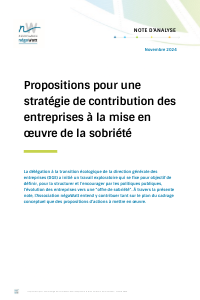 La note propose une série de pistes pour une stratégie "sobriété et entreprises", en distinguant différents niveaux d’implication des entreprises. Elle encourage les entreprises à mettre en œuvre la sobriété sur leur propre périmètre, à développer des activités qui contribuent à la sobriété, à apporter des innovations dans ce domaine, et à restructurer ou réorienter leurs activités si celles-ci sont basées sur une consommation excessive de ressources.